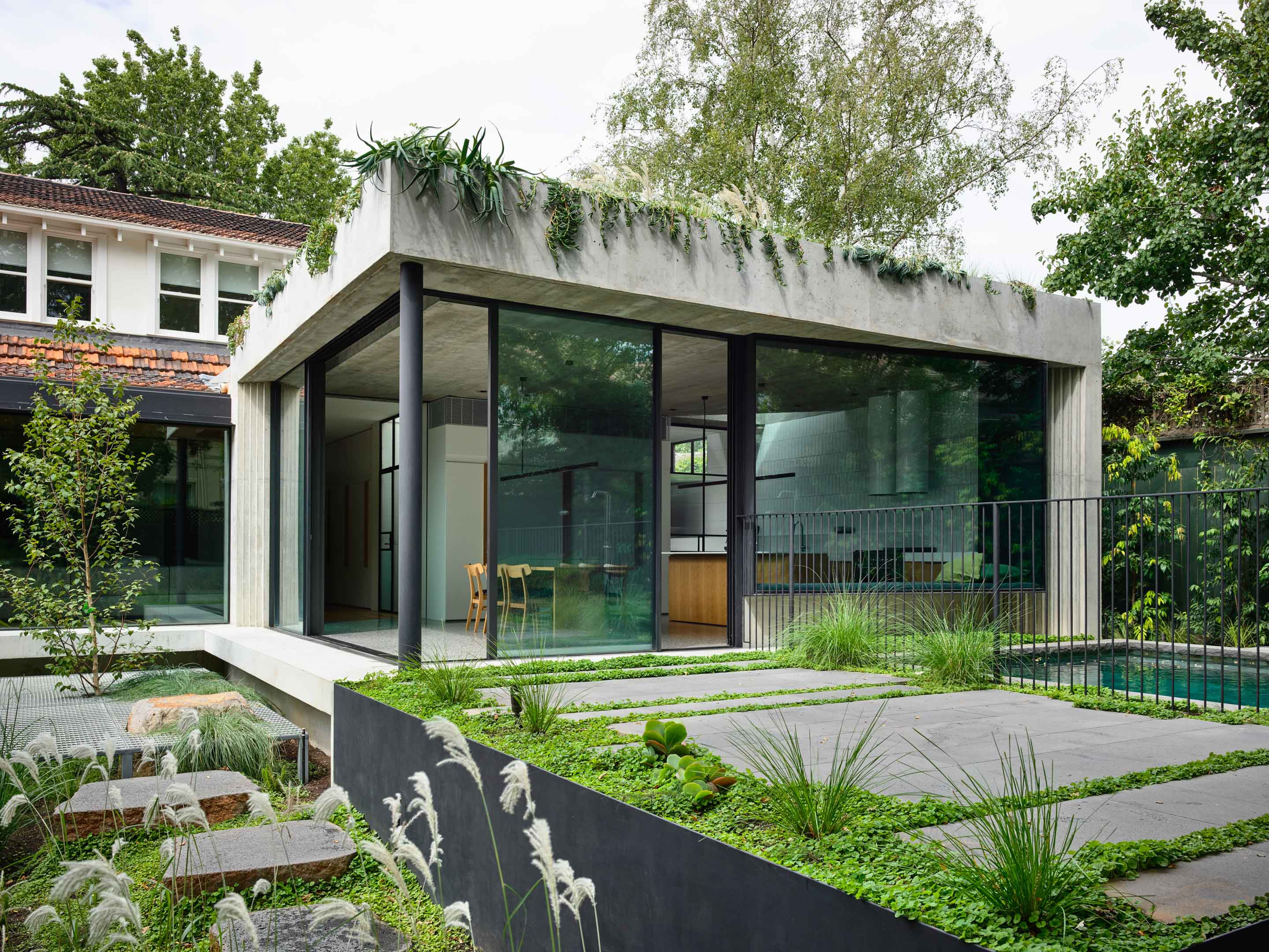“You've now got this really kind of light window element that almost disappears into the landscape, which is offset against the heaviness of the concrete.”