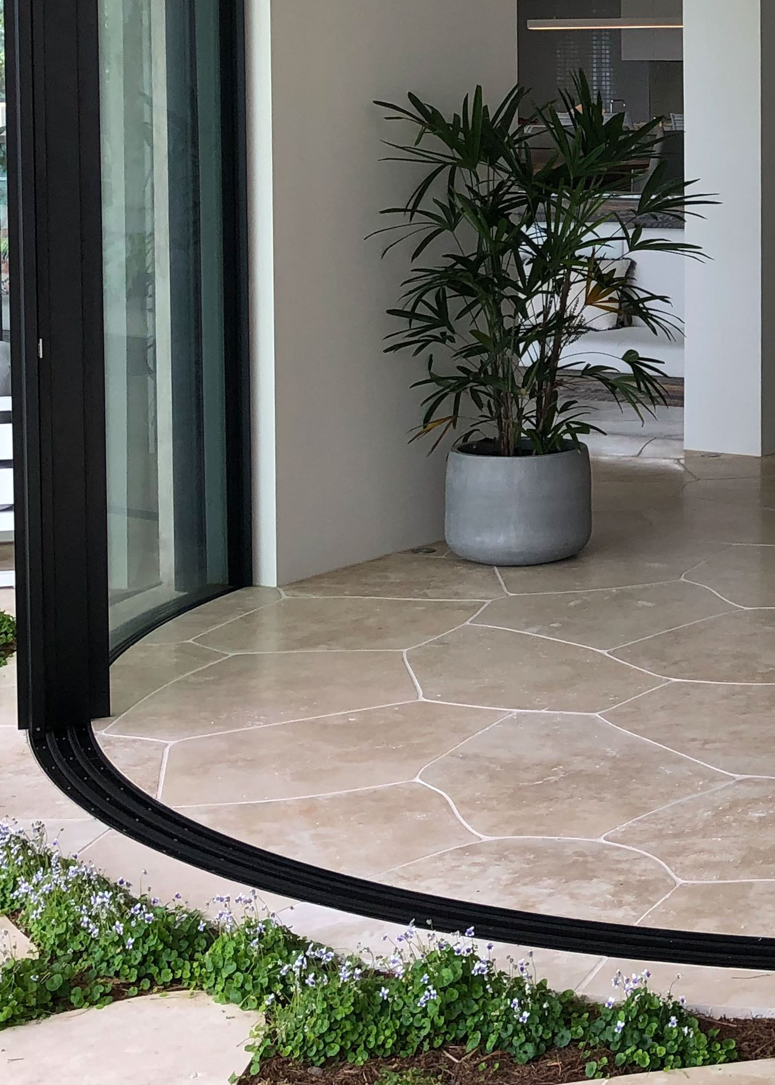 Embedded within the tracks, Vitrocsa’s patented stainless steel bearings enable the movement of monolithic glass panels of up to 18m2 and 1.2t per pane.